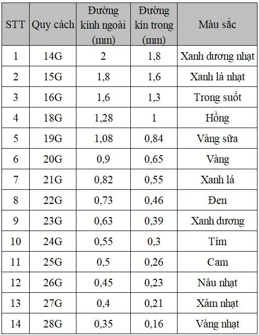 - Đa dạng kích thước (gauge)