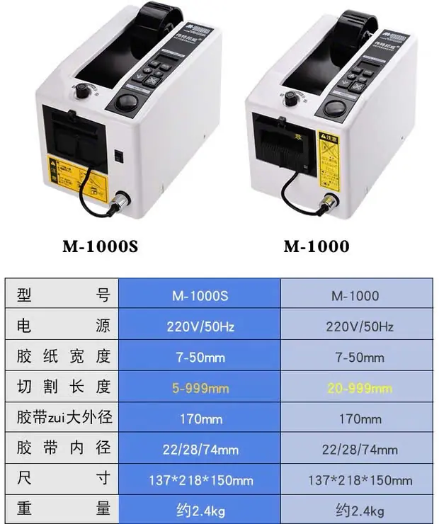 Thông số máy cắt băng keo tự động M-1000S và M-1000